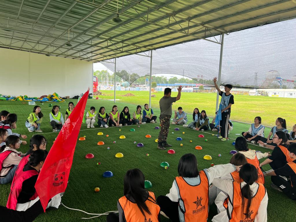 活动伊始,在教官的带领下,实验班开展了一系列富有趣味和挑战性的游戏如“老师说”“猎人松鼠大树”“蜗牛与黄鹂鸟”等,调动起大家的热情与活力。