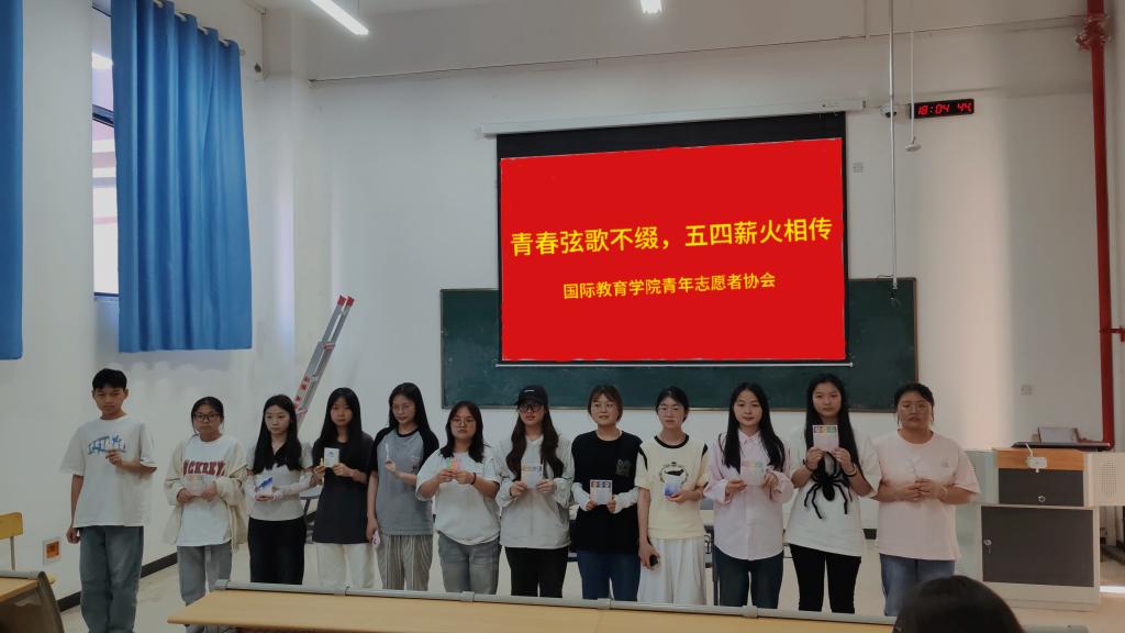 站讯(国际教育学院 杨琨 学生记者 杨康)为深入学习宣传贯彻习近平总书记五四青年节对全国广大青年寄语精神,引导学生继承和发扬五四精神,成为德智体美劳全面发展的优秀青年,国际教育学院青年志愿者协会于5月13日傍晚在博达楼B101教室开展了主题为“青春弦歌不辍,五四薪火相传”的“五四”特色主题活动。