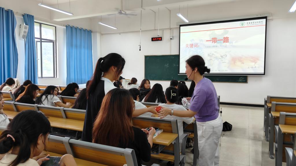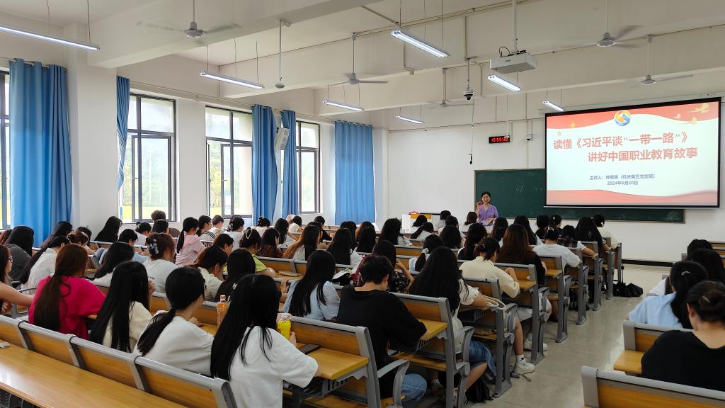 钟菊英讲授详细阐述了“一带一路”倡议的起源和发展,深入分析该倡议如何促进了参与国家的经济增长和区域合作,同时还讲述“一带一路”上的宜职故事,钟菊英提到伟德官网与国外的合作项目不仅促进了中国与“一带一路”共建国家之间的文化交流和民心相通,还为社会发展培养了大量技术技能人才。