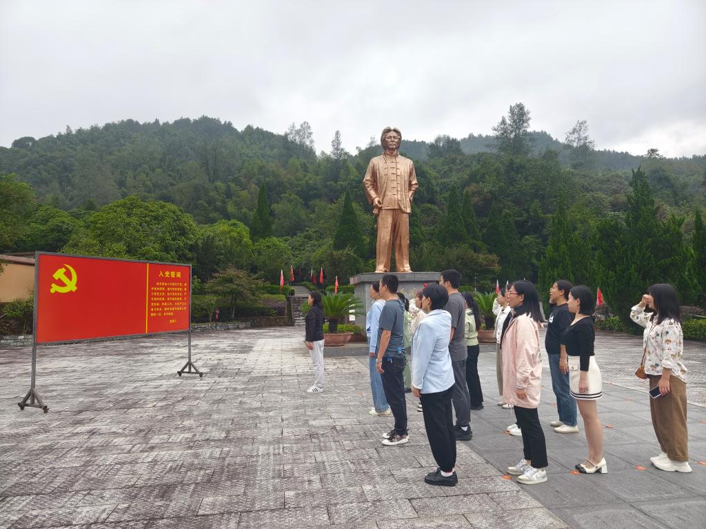 首站来到了秋收起义纪念地,也被称为“毛主席化险地”。跟随讲解,大家了解了毛泽东同志在铜鼓遇险的经过,以及他如何运用智慧成功脱险的故事。支部书记舒文同志带领全体党员重温入党誓词,大家举起右拳,面向鲜红的党旗庄严宣誓,铮铮誓言让我们时刻牢记党员身份,牢记党的初心和使命。