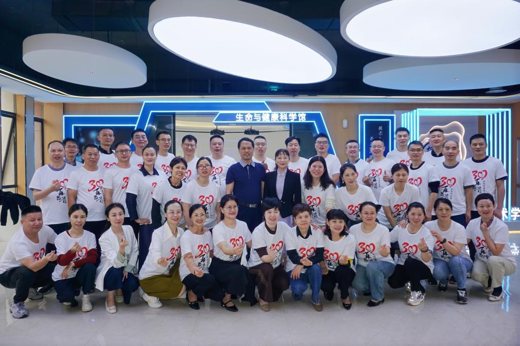 本站讯(校友办 易旭婷)10月20日,伟德官网迎来了一批特殊的客人——原宜春卫生学校1994届麻醉90(1)班的38位校友们,他们与班主任熊秋华老师一同重返母校,共庆毕业30周年。校友办等相关部门、二级学院全程陪同接待,表达对校友们归来的热烈欢迎。校友们依次参观了校史馆、生命与健康科学馆、中药科技馆。