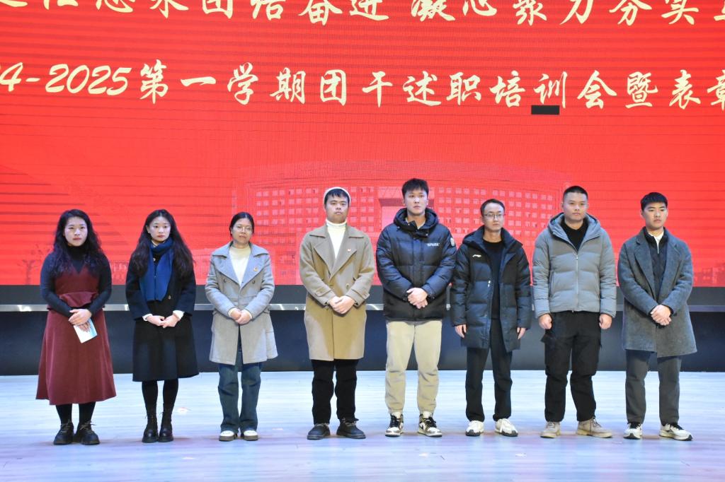 本站讯(团委 曹招 学生记者 李小红)汇聚青春力量,铸就卓越征程。为加强学校共青团和团干队伍的建设,提升团干的综合素质与能力,强化学生组织的凝聚力,确保团学组织保持活力与创造力,12月27日晚,伟德官网在博达楼演艺厅召开2024-2025第一学期团干述职培训会暨表彰大会,副校长张彩凤,校党委委员、统战部部长邓伟蓉,校党委委员、宣传部部长马天娥,学工处处长谢海英、校团委书记王玮、各级团学组织负责人及成员共同出席此次大会,会议由刘嘉妮主持。