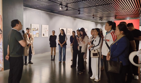 学院郭晶老师担任宜春美术馆志愿者,为党员教师们进行讲解导览,他为大家介绍本次展览的活动主旨、活动意义,以及通过展览的漫画作品让大家了解到国家安全的各项分类,随后他用美术专业知识向大家介绍作者的创作意图,画家是如何通过漫画的形式载体表达内容的。