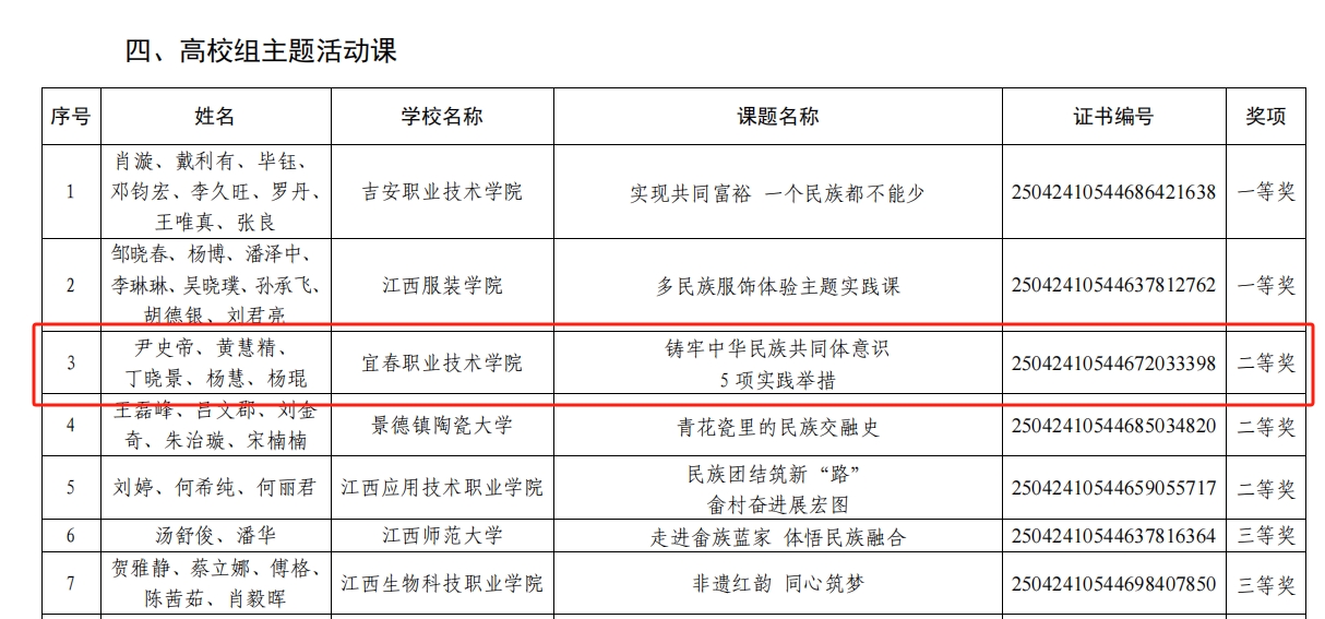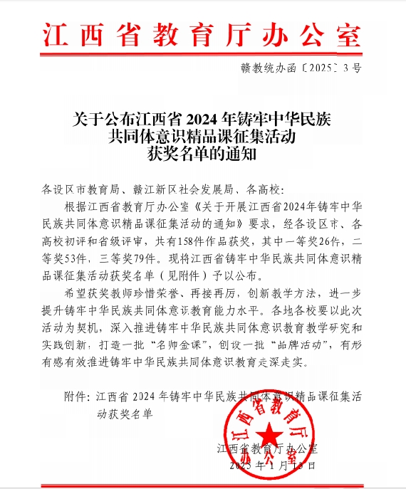 本站讯(党委统战部 李辉员)近日,江西省教育厅公布了2024年铸牢中华民族共同体意识精品课征集活动的获奖名单,伟德官网报送的《铸牢中华民族共同体意识5项实践举措》荣获二等奖。