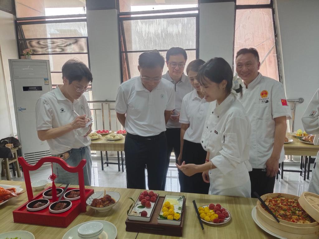 比赛过程中,校领导认真观摩选手们的操作流程,不时与现场指导教师交流,深入了解学生的学习情况与专业发展需求。颁奖环节,他们高度赞扬选手们精湛的技艺与良好的精神风貌,同时对学院烹饪专业的教学成果给予充分肯定,认为学院在培养学生实践能力方面取得显著成效。