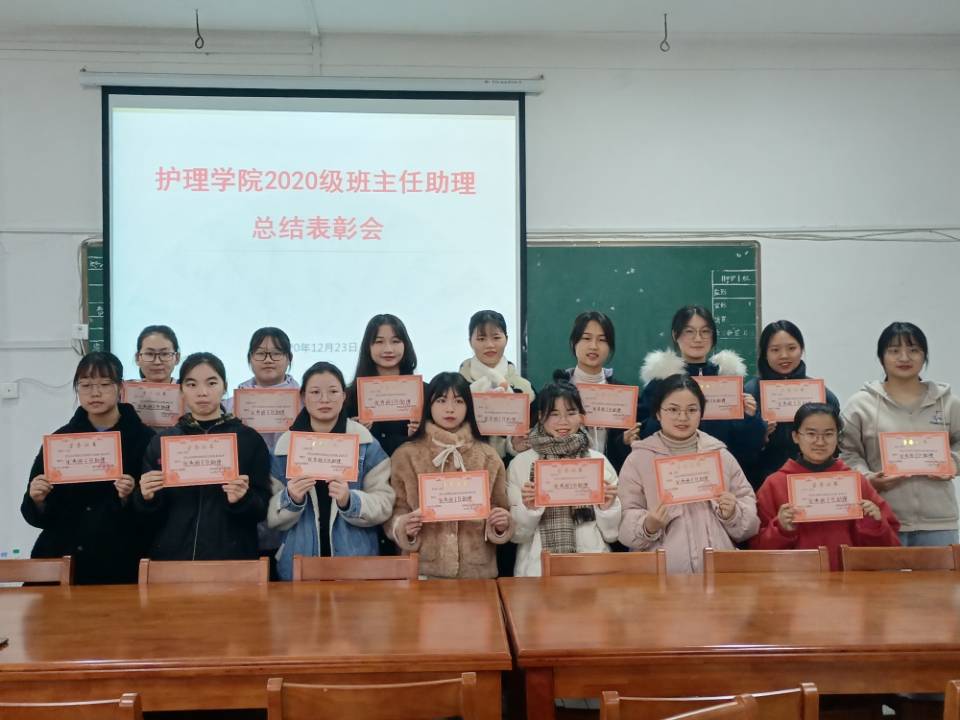 本站讯(护理学院 张蔺珊 李珊 学生记者 饶玉婷)12月23日,护理学院在南校区阅览室召开2020级班助总结表彰大会,会议由护理学院党总支书记胡蓉主持,学工科科长曲晴及15名班主任助理参加本次大会。