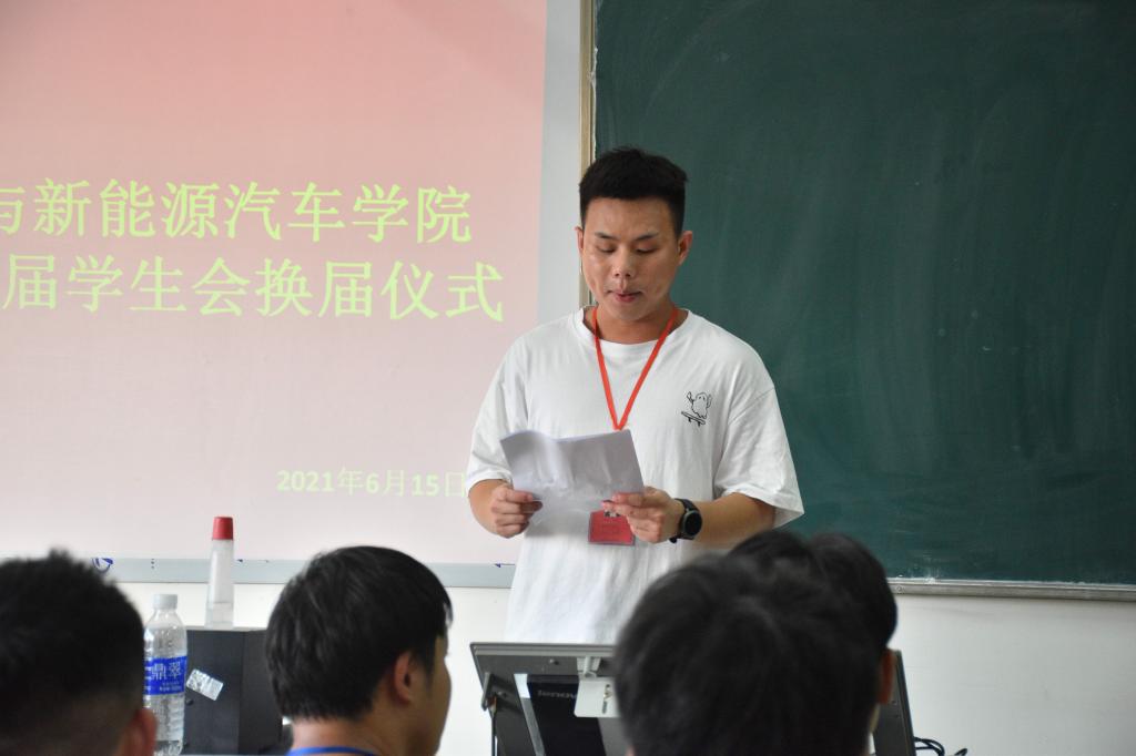 在周勤老师介绍了参加此次换届仪式的领导与嘉宾后,全体师生起立,伴随着庄严的国歌,拉开了大会的序幕。首先是我院学生会上一届执行主席张伟同学作出工作总结,并对新一届学生会工作人员给予希望。紧接着,新一届学生会执行主席彭思文进行了表态性发言,并发表了对未来工作的展望,表达了自己对工作顺利完成的决心。