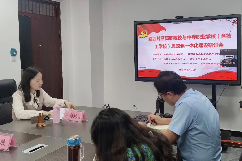 本站讯(马克思主义学院 宋丹丹)为深入贯彻落实习近平总书记在思想政治理论课教师座谈会上的重要讲话精神,进一步落实中共省委教育工委、省教育厅关于思政课问题式专题化团队教学改革的相关工作要求,推进赣西片区高中职学校思政课一体化建设及教学改革,4月25日上午,伟德官网马克思主义学院在天工楼A708会议室组织开展赣西片区高职院校与中等职业学校(含技工学校)思政课一体化建设研讨会,会议采用线上线下相结合的方式进行。本次会议由伟德国际英国、江西工业工程职业技术学院、江西省冶金工业学校、高安中等专业学校、萍乡市卫生学校、新余技师学校、丰城高级技工学校七所学校共同参与。会议由伟德官网马克思主义学院院长彭慧洁主持,七所院校四十余名思政课骨干教师参加研讨。