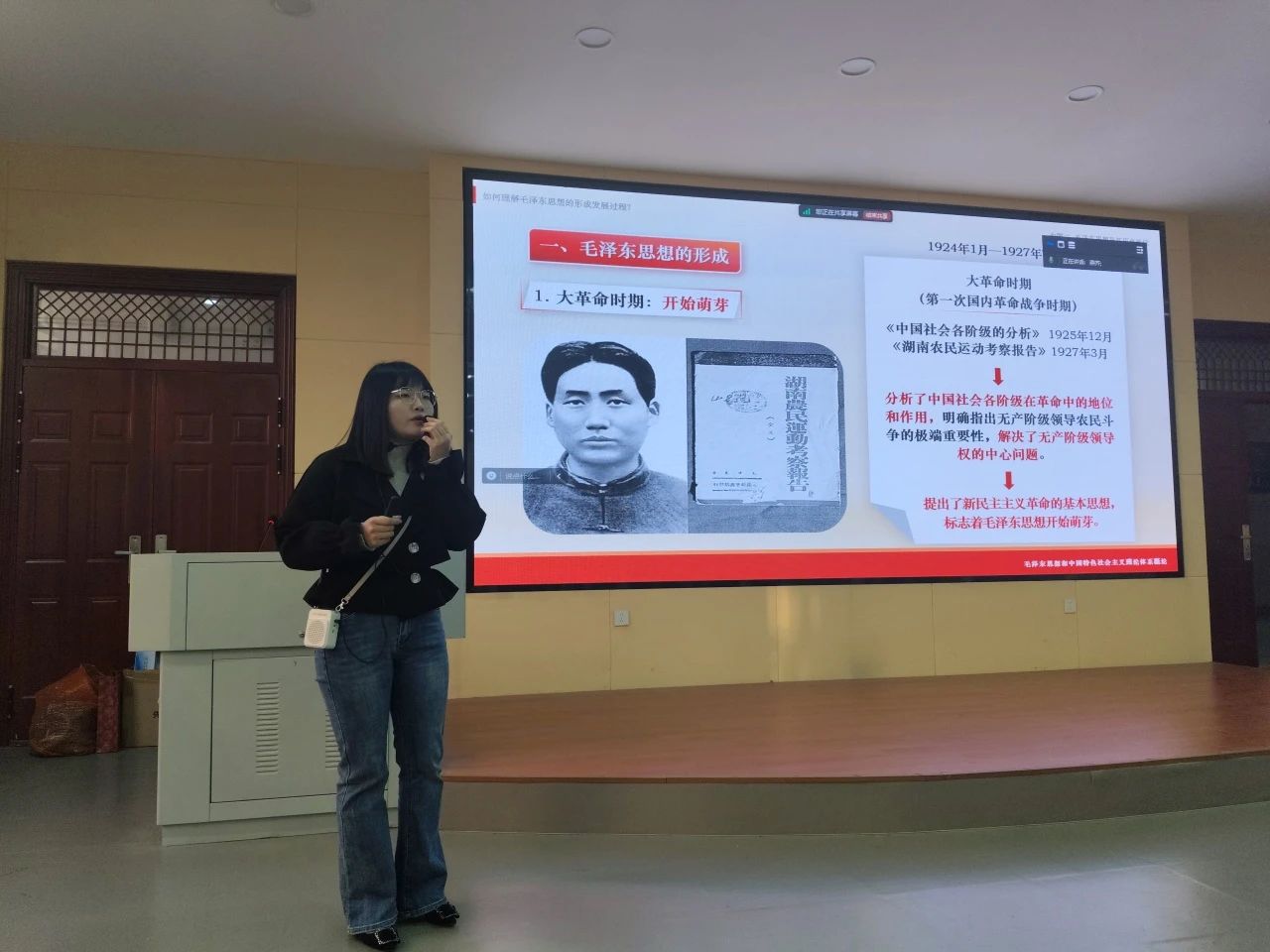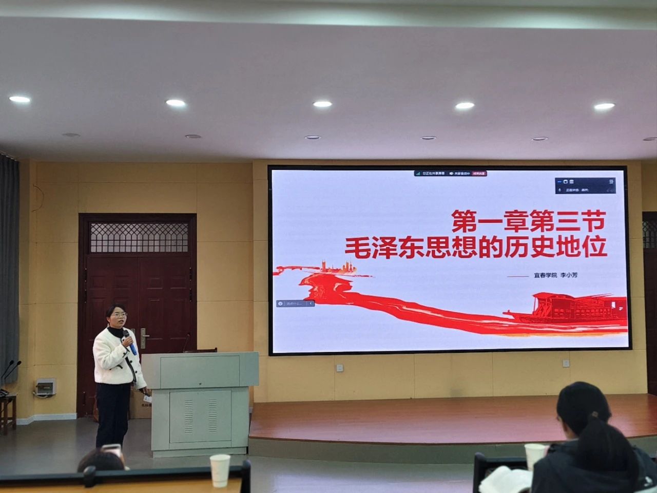 教学展示环节,来自宜春学院、宜春幼专、宜春职院三位青年教师围绕该专题相关内容进行了教学展示。宜春学院李小芳老师以“毛泽东思想的历史地位”为题,从评价历史人物的标准、两个重要的问题和毛泽东思想的历史地位三个方面展开。宜春幼专李春梅老师以“如何理解毛泽东思想的形成发展过程?”为题,宜春职院的刘明明老师以“毛泽东思想是怎样形成和发展的”为题,分别从萌芽、初步形成、走向成熟、继续发展这四个方面进行教学展示。三位老师的展示以问题式逻辑展开,有理有据,清晰流畅,得到了与会专家和教师们的认可。