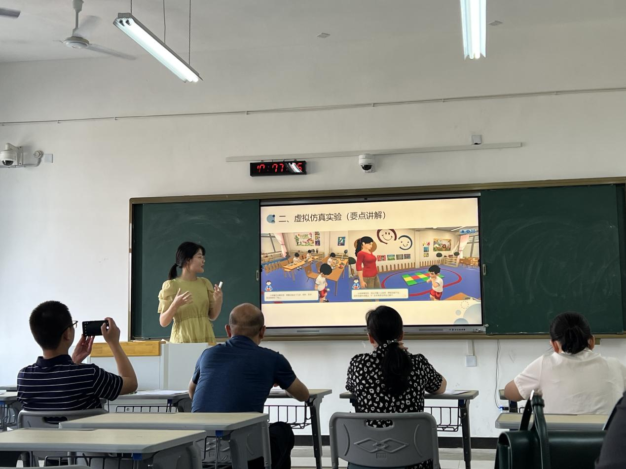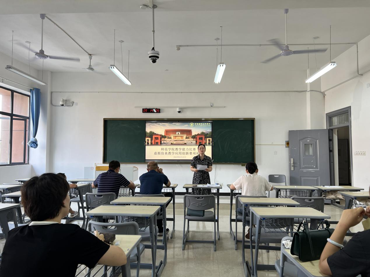 本站讯(师范学院 周思昀)为促进学校虚拟仿真教学的应用及发展,推动教师转变思想、紧跟时代,提高新时代教师教育技术应用水平,提升其融合新兴科技教学育人能力和教学创新能力,8月15日,师范学院在正心楼举办虚拟仿真教学应用初赛。本次比赛经各教研室推荐,共7名教师参赛,师范学院党总支书记邹晓英、院长肖勇,副院长漆凡及袁军荣担任评委。