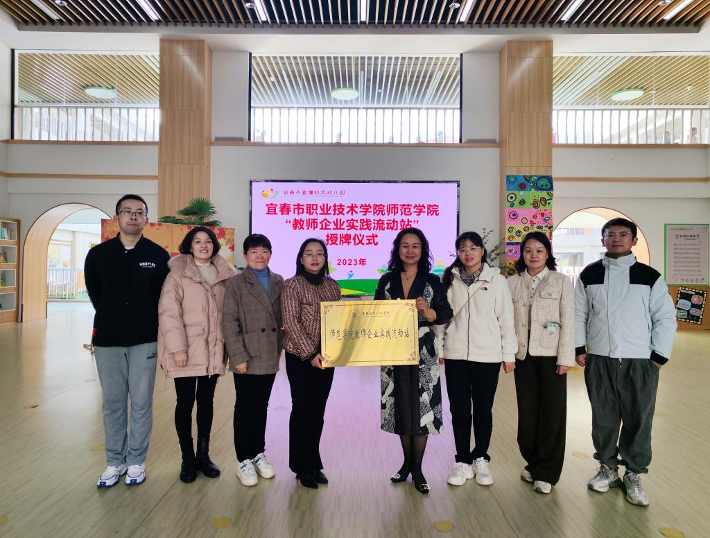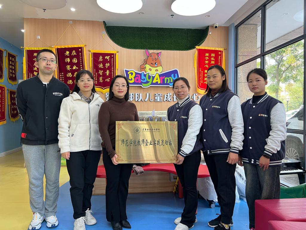 本站讯(师范学院 徐政)为进一步加强学校“双师型”教师队伍建设,深化产教融合、校企合作,11月16日,师范学院党总支书记邹晓英、副院长漆凡及相关专业教师一行,赴宜春市直属机关第二幼儿园和宜春贝比a米婴儿部队儿童成长中心举行教师企业实践流动站揭牌仪式。
