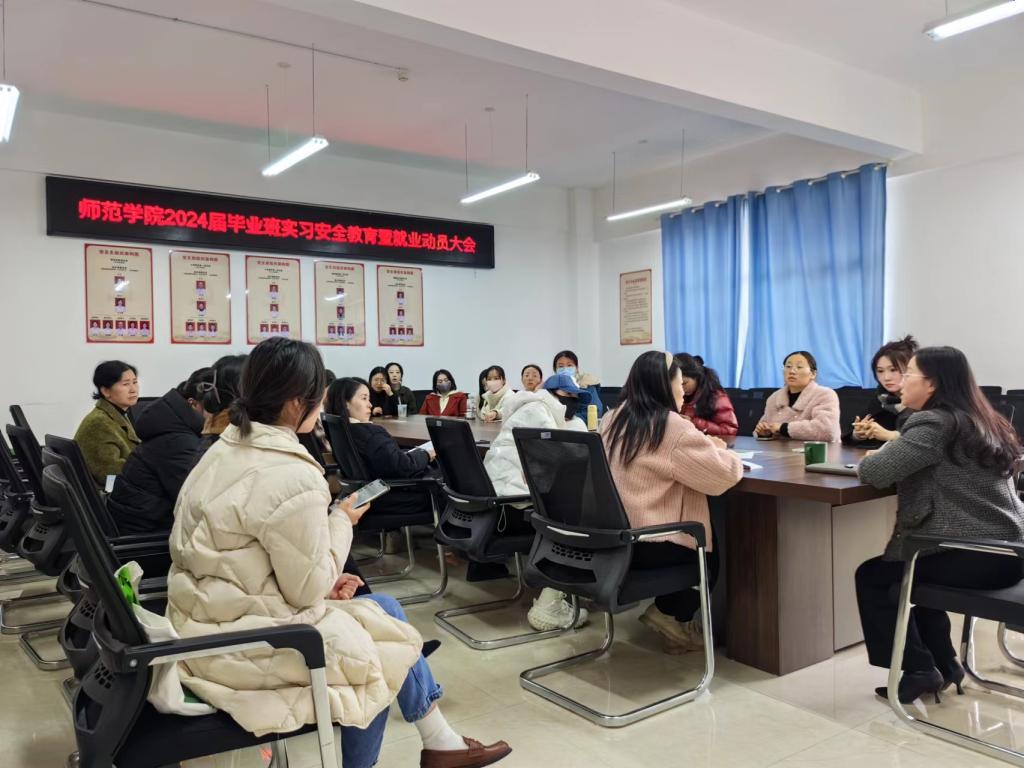 本站讯 (师范学院 暨琨)1月9日下午,师范学院在正心楼B204会议室召开2024届毕业班实习安全教育暨就业动员大会。2024届全体毕业班班主任辅导员参加会议,会议由院党总支书记邹晓英主持。此次会议旨在布置下学期学生实习工作,开展实习前安全等各方面教育,并重点对今年毕业生的就业工作进行政策宣讲和就业动员。