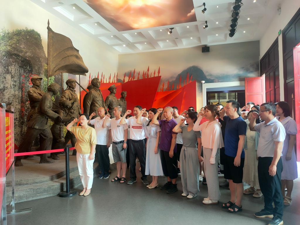 最后,邹晓英带领大家重温入党誓词,并在纪念馆内为大家上了一堂生动的党课。她结合本次活动内容,深入浅出地阐述了党的光辉历程和宝贵经验,强调了新时代党员的责任和使命。