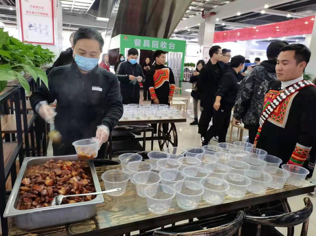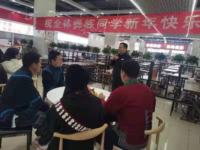 在食堂,彝族同学伴随欢快的音乐,跳起象征圆满、团结的彝族达体舞。活动中,统战部韩部长向彝族同学们送上了节日的祝福,表达了学校对少数民族同学的关爱。学校还为每位彝族同学准备了红烧肉和水果,并逐一分发到同学手中。