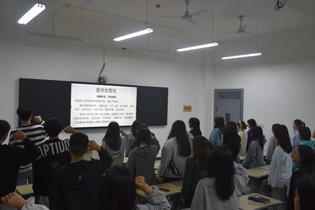 在各班庄严地医学誓词宣誓中,此次班会圆满结束,大家开启了他们全新的医学之路。愿他们能够牢记“健康所系,性命相托”,在未来的学习中练就扎实本领,为祖国医药卫生事业的发展和人类身心健康奋斗终身。