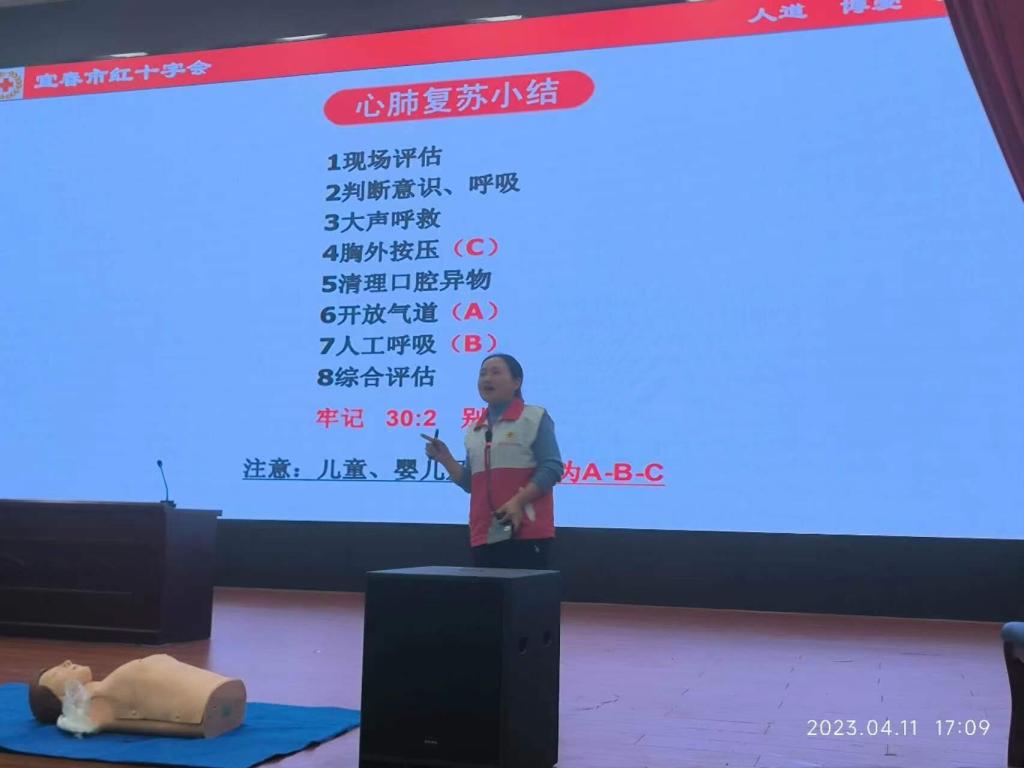 为深入贯彻习近平总书记关于健康中国建设的重要论述,进一步提高师生安全防范意识和自救互救能力,建设平安校园,落实伟德官网“三比三争”工作要求,4月11日下午,医学院(附属医院)在仁济楼小礼堂举办“救在身边·校园守护”暨2023年度应急救护培训启动仪式。校党委委员、副校长刘叶建,袁州区红十字常务副会长丁雯凤,宜春市博爱救护中心主任王艳等出席此次活动,并分别进行讲话。各学院2022级400名学生干部代表参会。