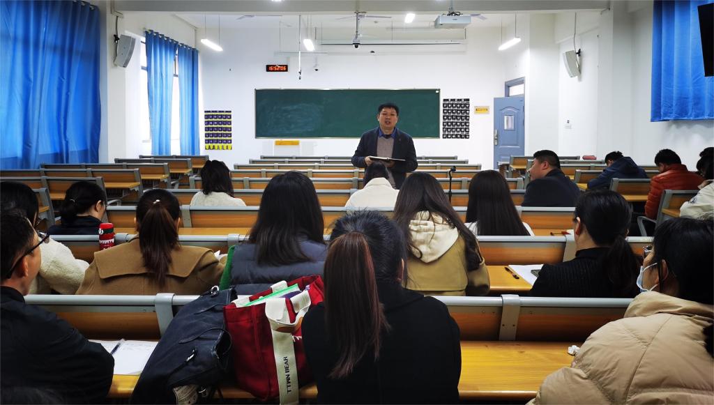 潘锋钢带领全体教师学习《师德优秀典型事迹》——人民教育家于漪的先进事迹,学习这位耄耋之年仍在教学一线熠熠闪光的“人民教育家”,用一腔热忱为孩子点亮心中明灯。潘锋钢强调,党的二十大报告提出“加强师德师风建设,培养高素质教师队伍”,高校教师肩负立德树人的重任,更要有高度的思想觉悟,坚决抵制违反师德师风的行为,自觉以德立身,以德立学,以德施教,以德育德。