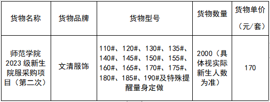 二、项目名称:师范学院2023级新生院服采购项目(第二次)